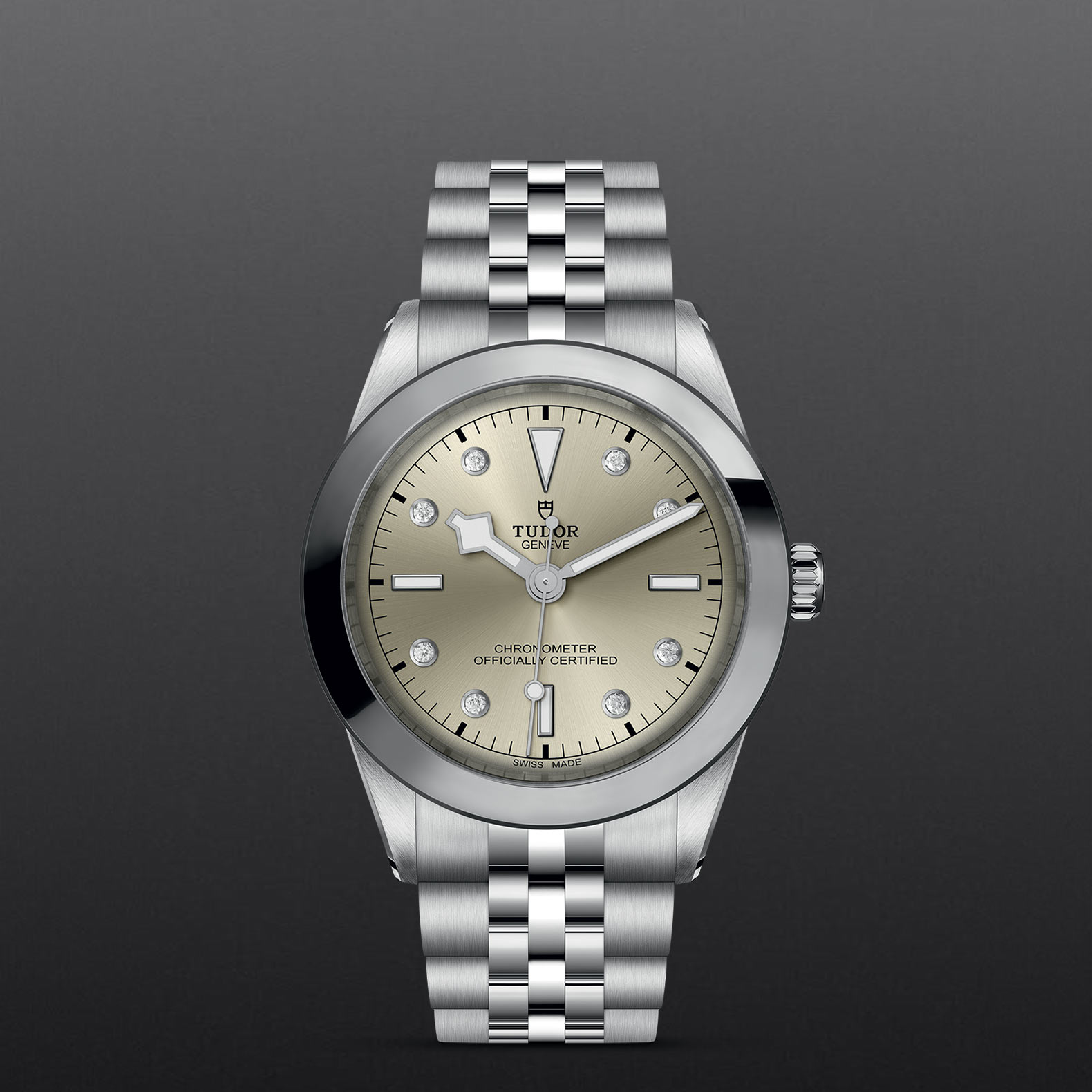 钢,中型款 35至39毫米,不锈钢三链节“铆钉式”表带,经磨光及磨砂处理,配帝舵表“T-fit”带扣