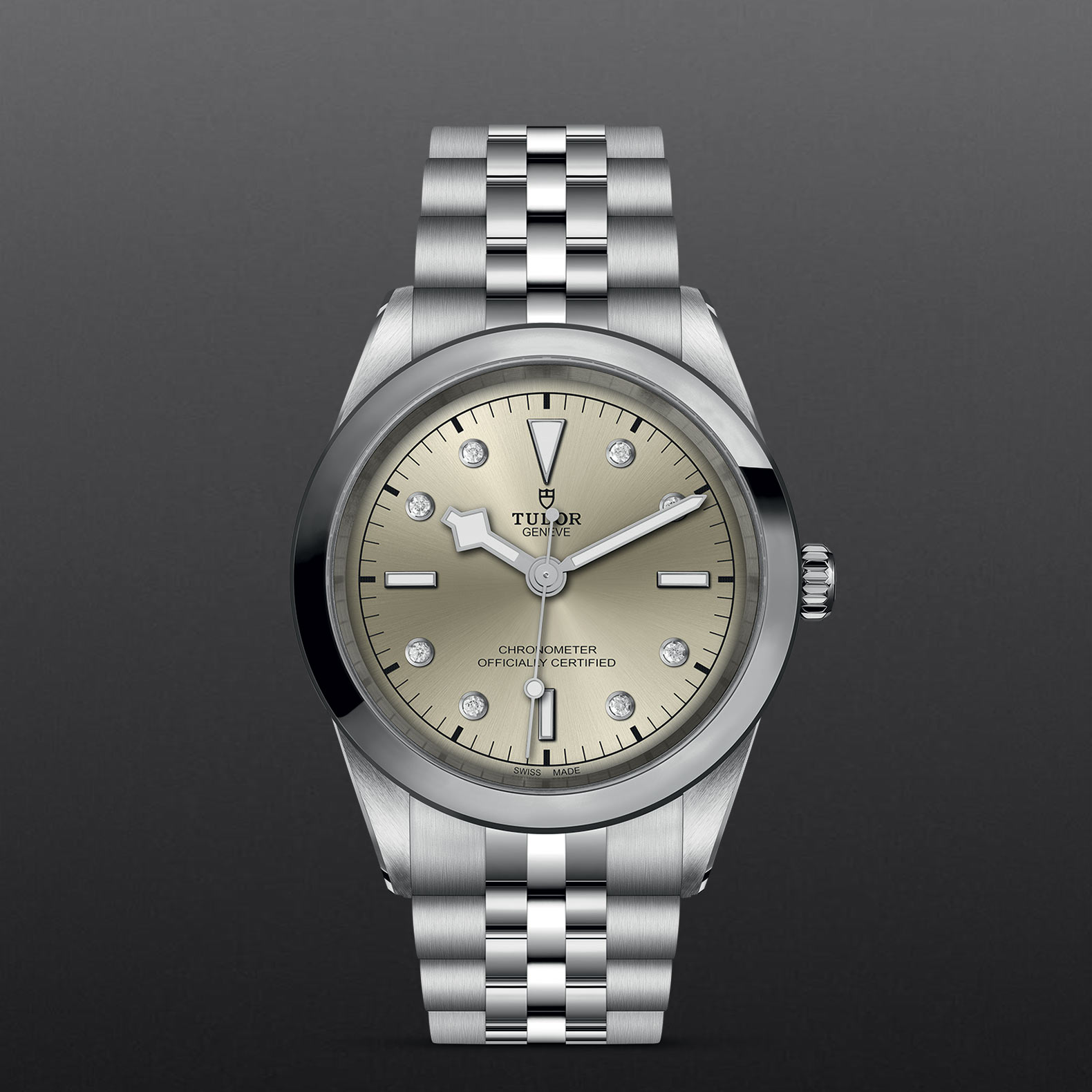 钢,中型款 35至39毫米,不锈钢三链节“铆钉式”表带,经磨光及磨砂处理,配帝舵表“T-fit”带扣