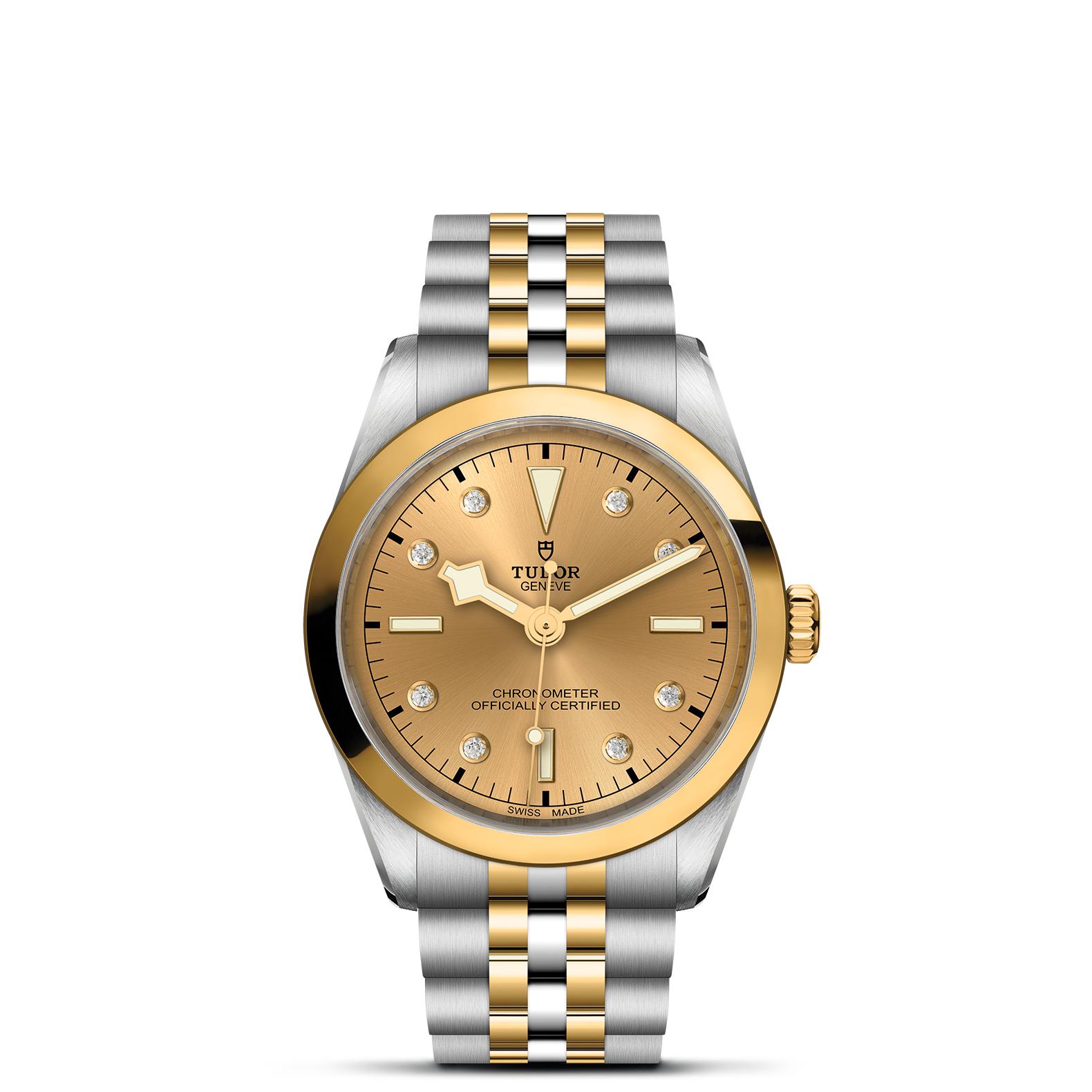 钢,大型款 ≥40毫米,不锈钢五链节表带,经磨光及磨砂处理,配帝舵表“T-fit”带扣