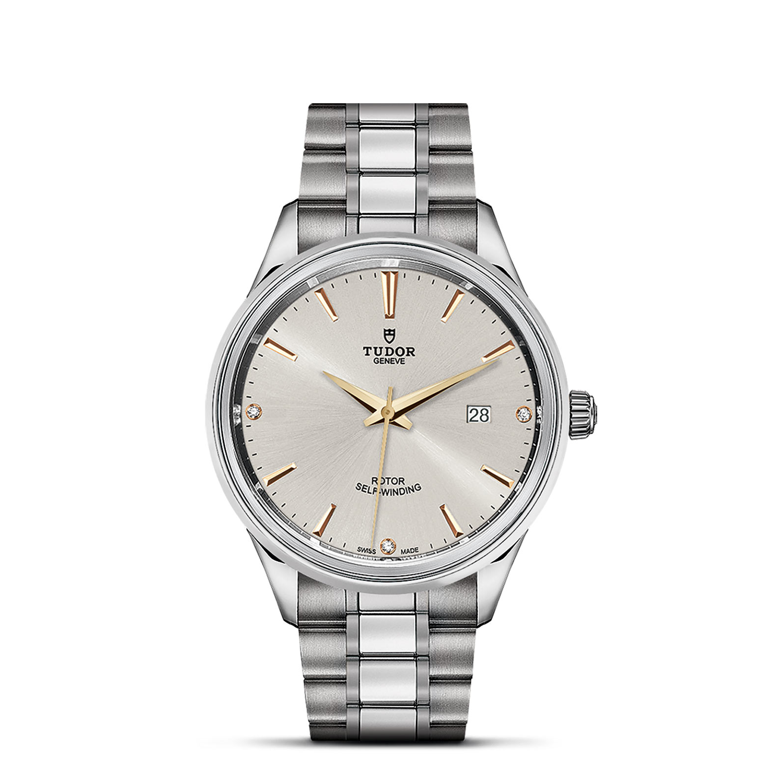 钢,中型款 35至39毫米,钢表带,7排链节,外侧链节表面磨砂,中间链节磨光,配摺扣及保险扣