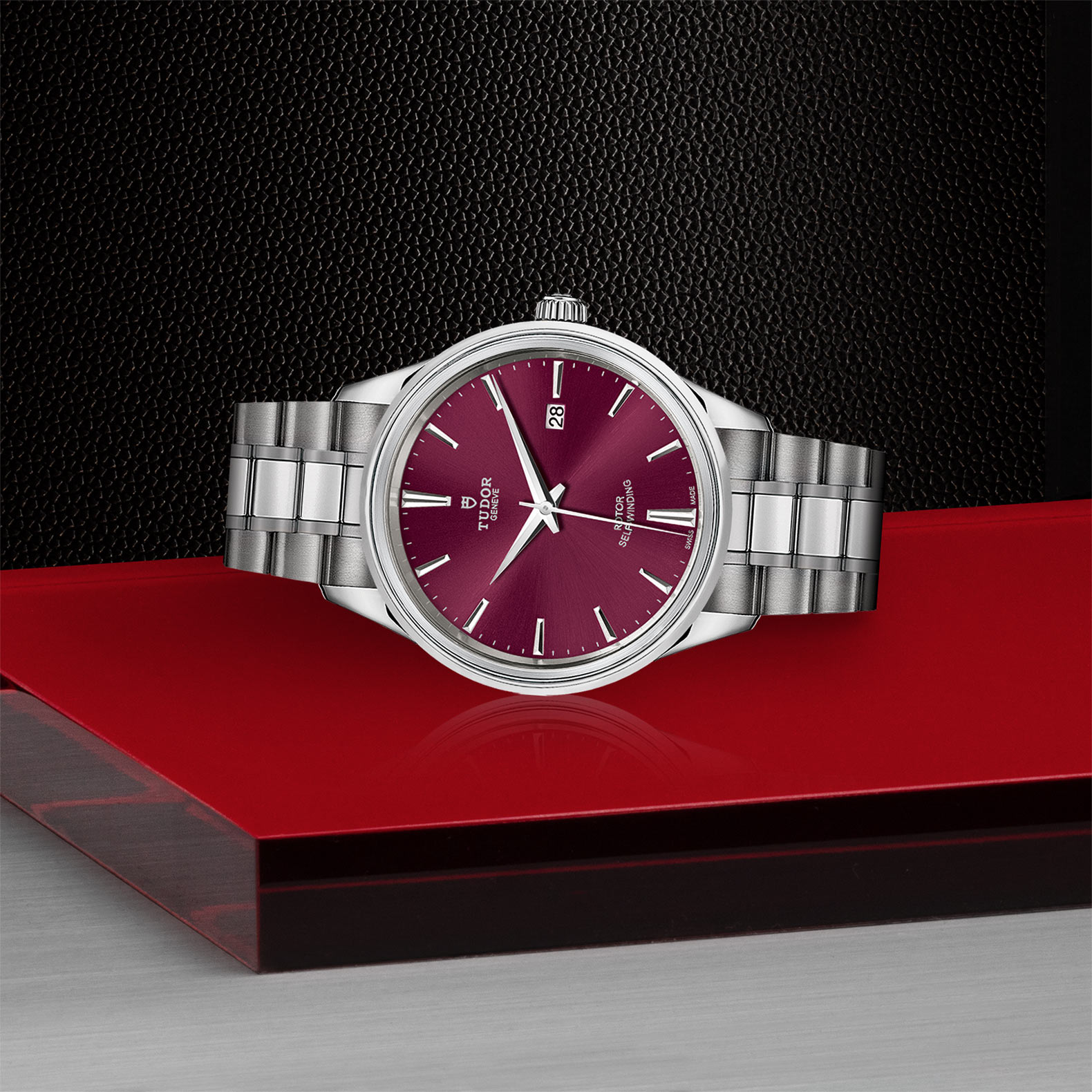 钢,中型款 35至39毫米,钢表带,7排链节,外侧链节表面磨砂,中间链节磨光,配摺扣及保险扣