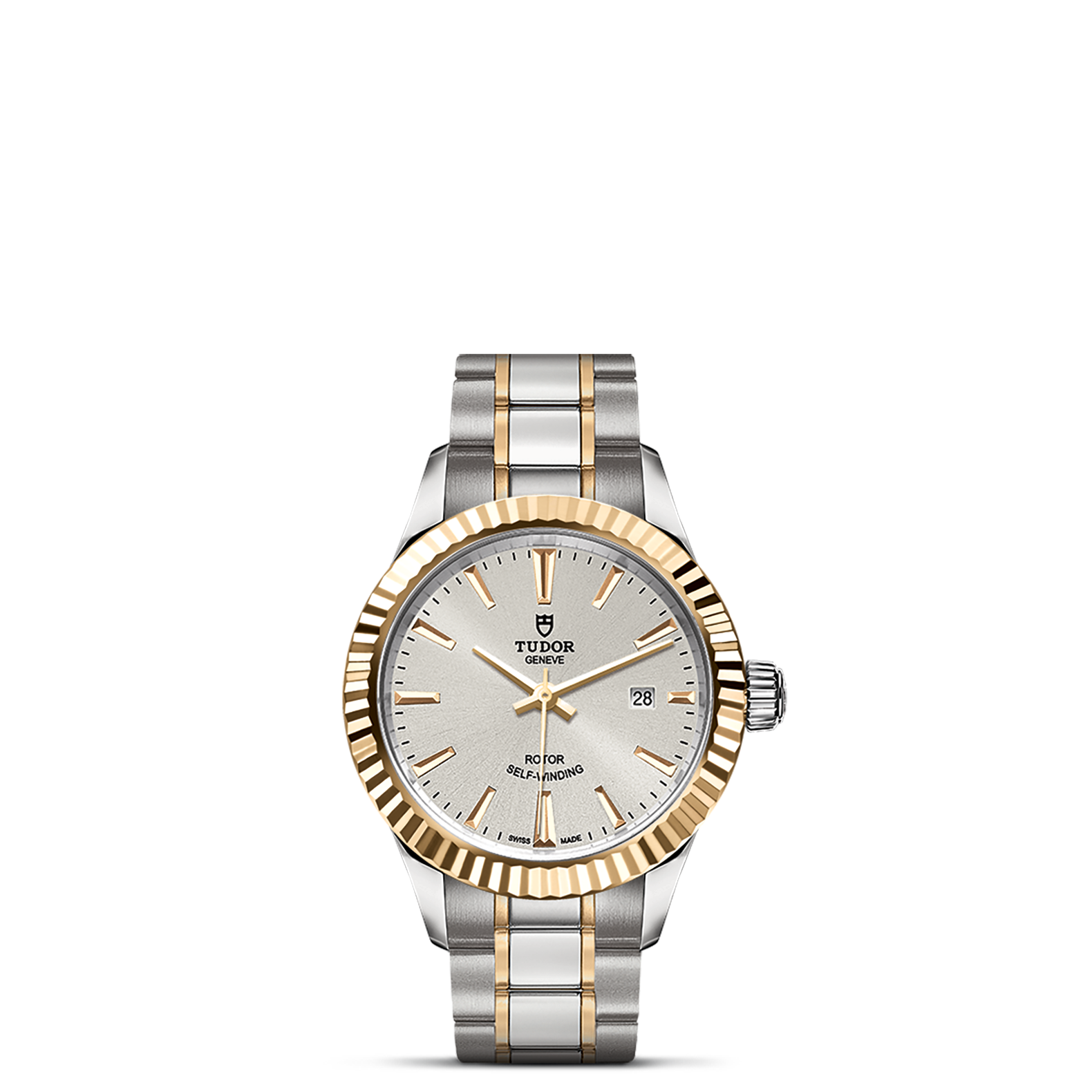 金及钢,小型款≤34毫米,中间链节由精钢或钢芯及0.2毫米黄金包金制成