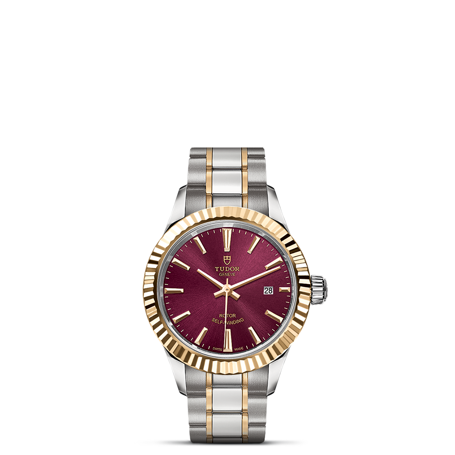 钢,中型款 35至39毫米,不锈钢五链节表带,经磨光及磨砂处理,配帝舵表“T-fit”带扣