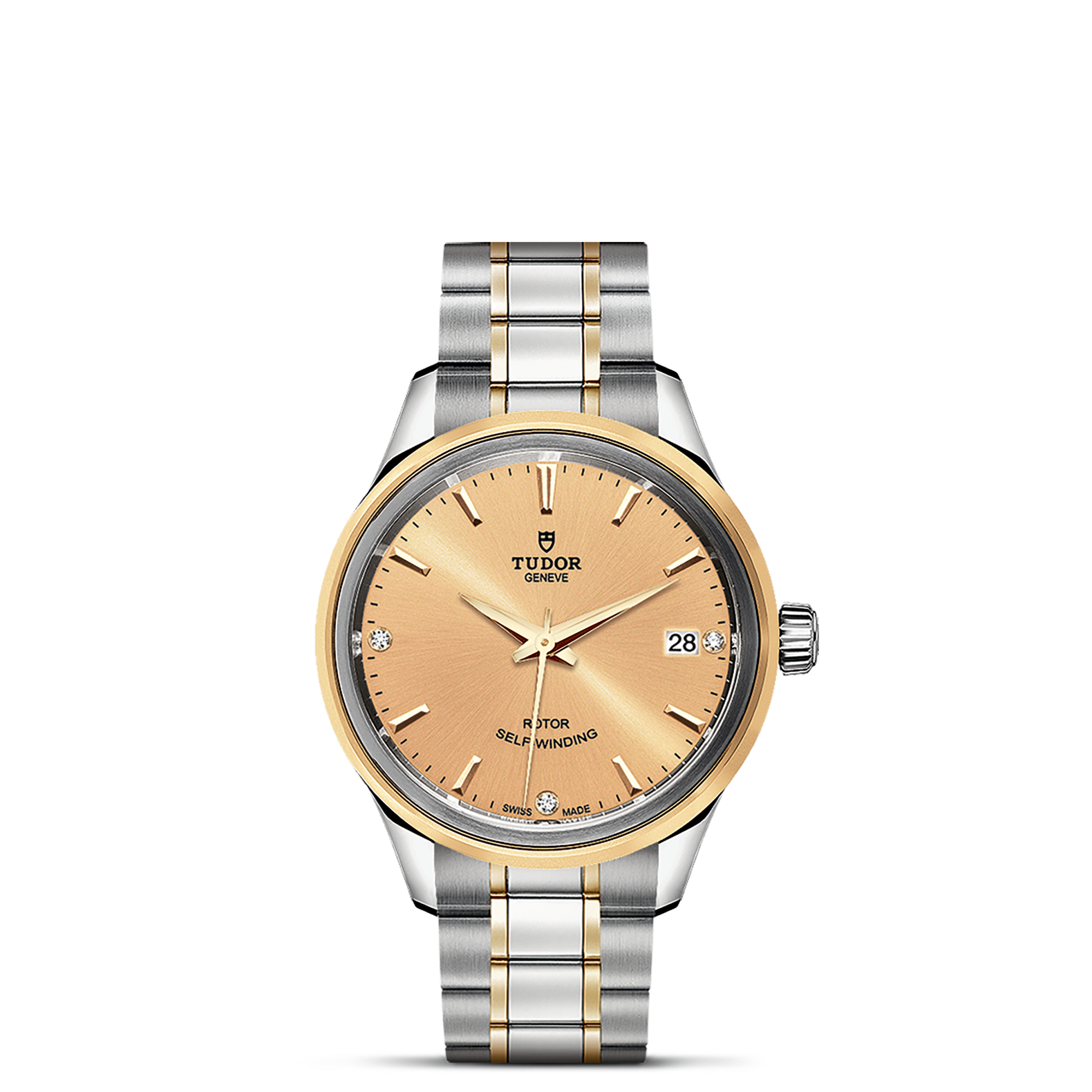 精钢旋入式上链錶冠,饰以帝舵表标志
