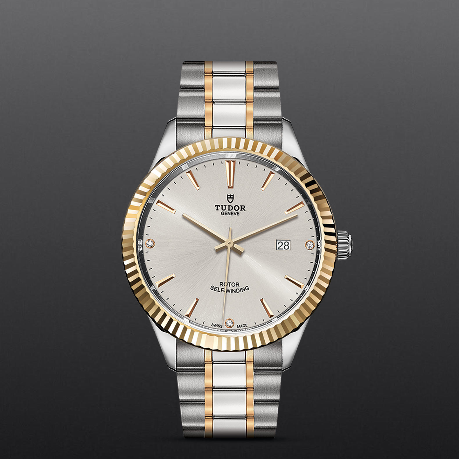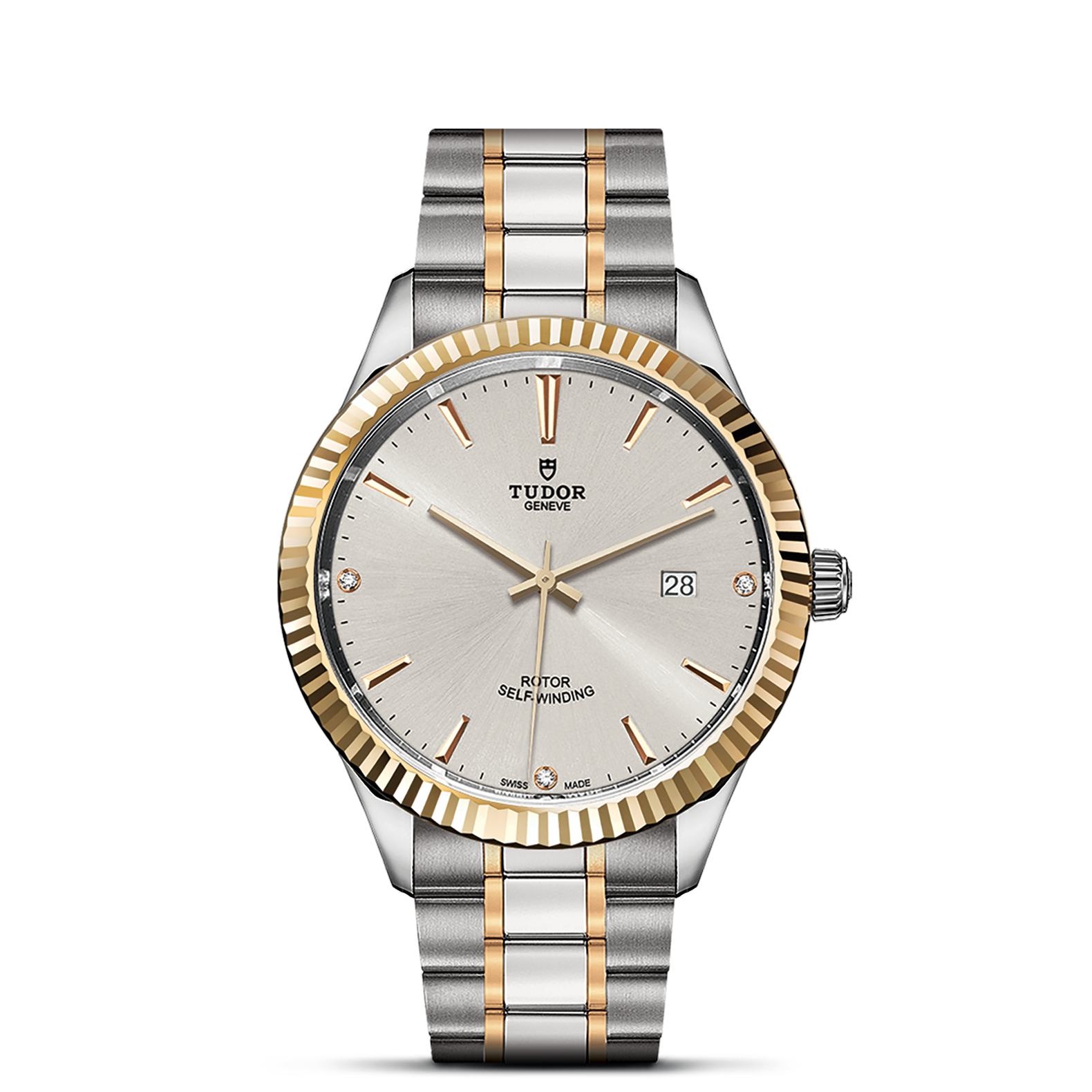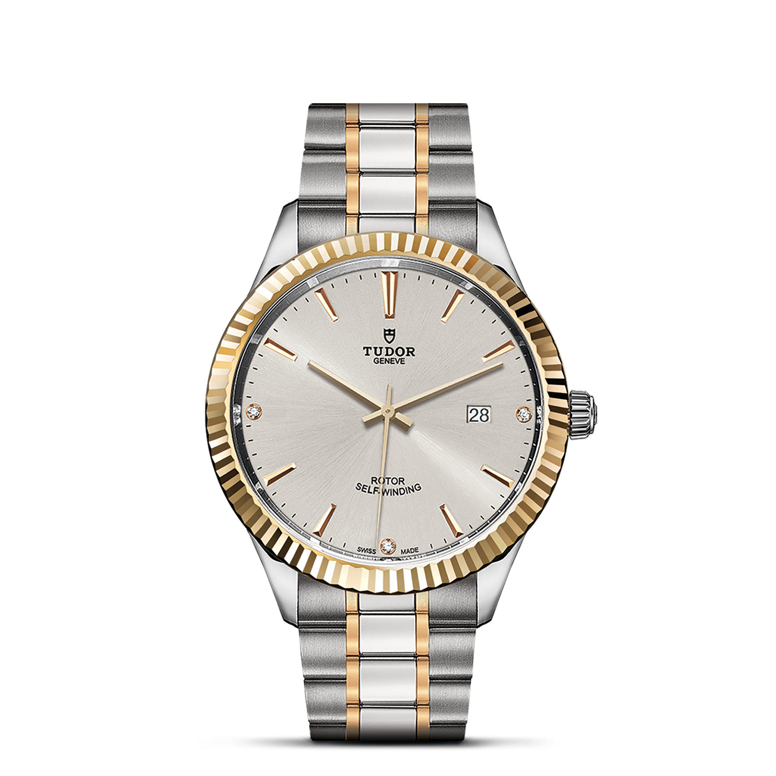 钢,中型款 35至39毫米,不锈钢三链节“铆钉式”表带,经磨光及磨砂处理,配帝舵表“T-fit”带扣