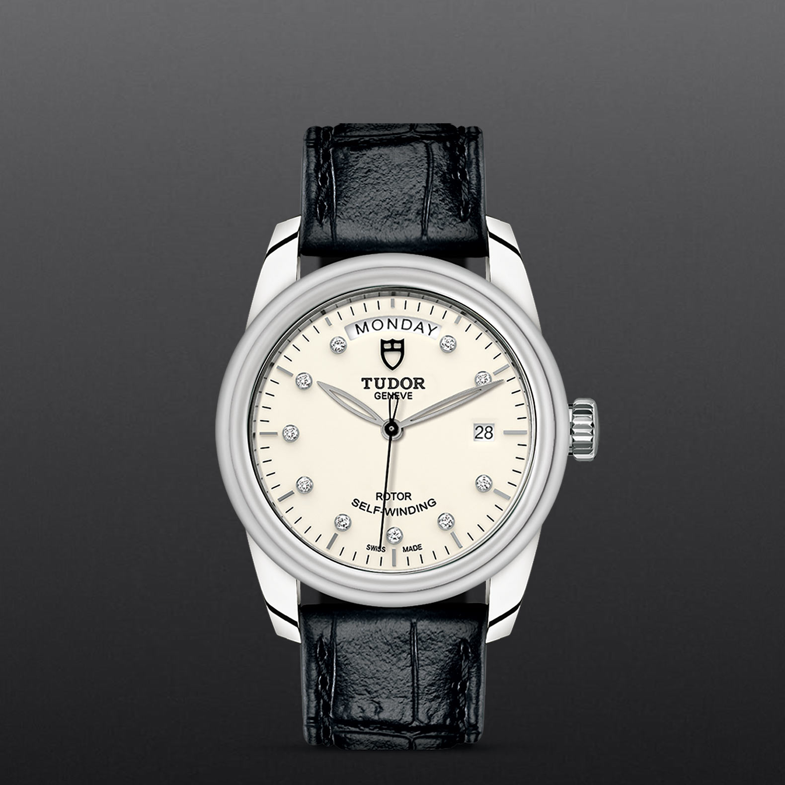 精钢旋入式上链錶冠,饰以帝舵表标志