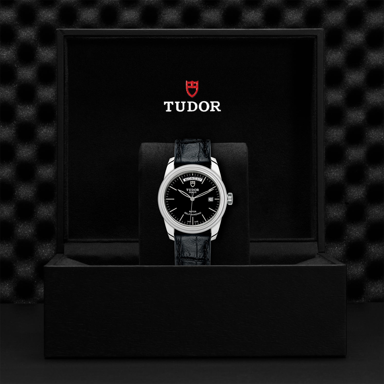 精钢旋入式上链錶冠,饰以帝舵表标志