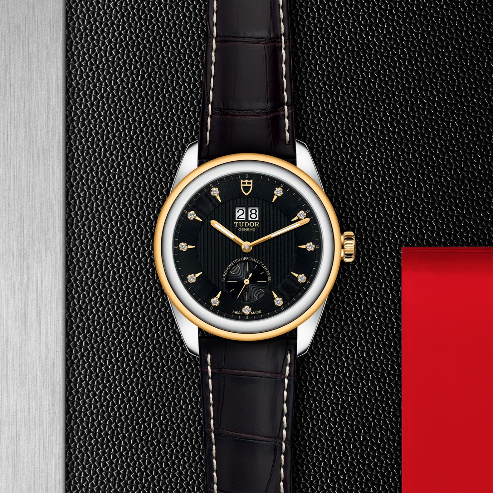 黑色配镀铑或镀金钟点标记,镶11颗钻石