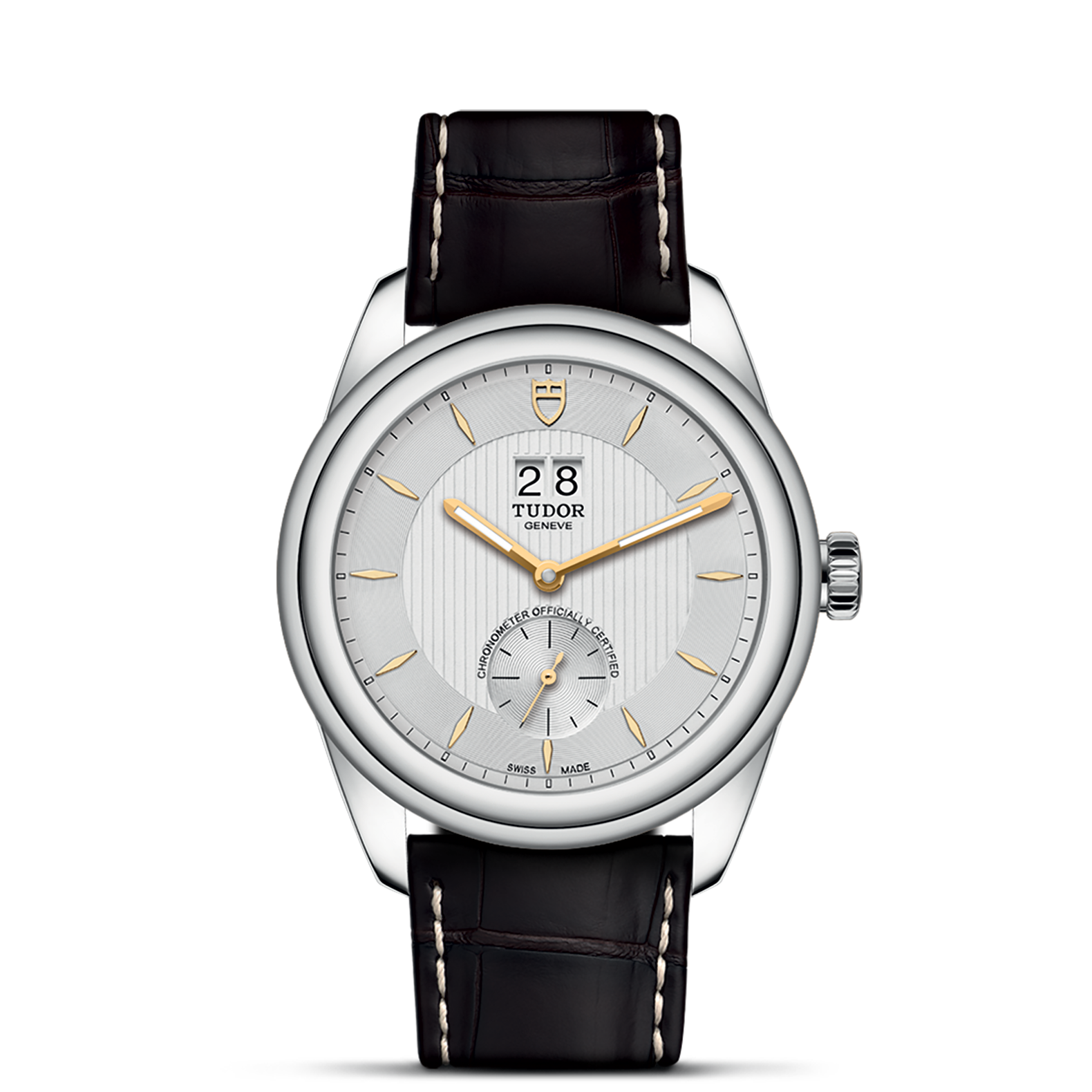 哑光棕色鳄鱼皮表带,配摺扣及精钢保险扣