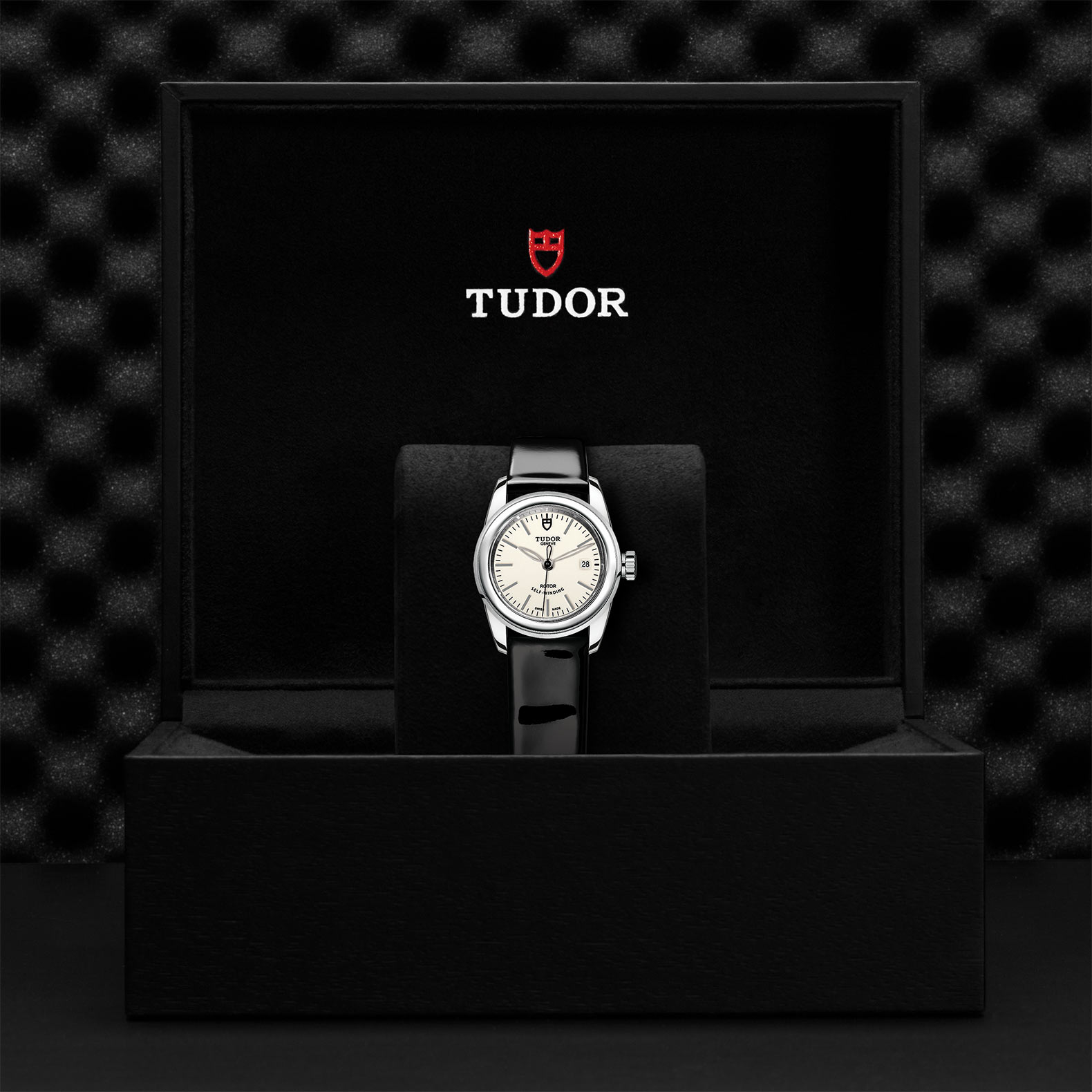 黑色漆皮表带,配摺扣