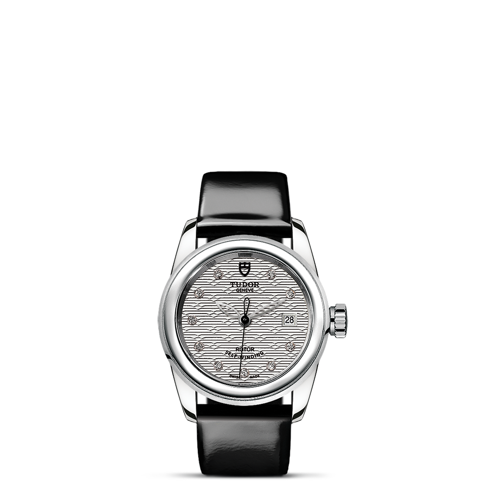 钢,大型款 ≥40毫米,不锈钢三链节表带,经磨光及磨砂处理,链节两侧光滑,配备帝舵表“T-fit”带扣