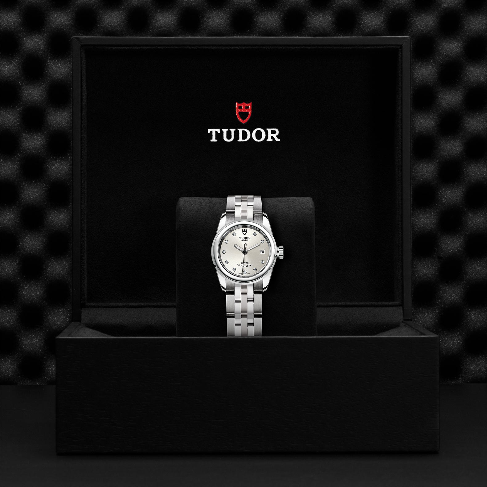 精钢旋入式上链錶冠,饰以帝舵表标志