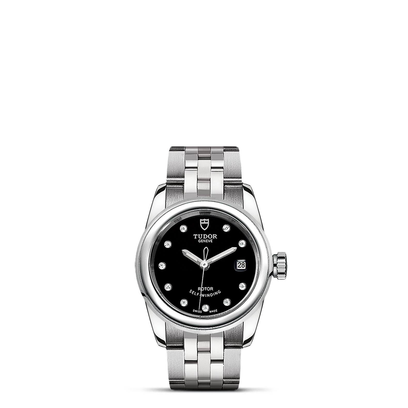 精钢旋入式上链錶冠,饰以帝舵表标志