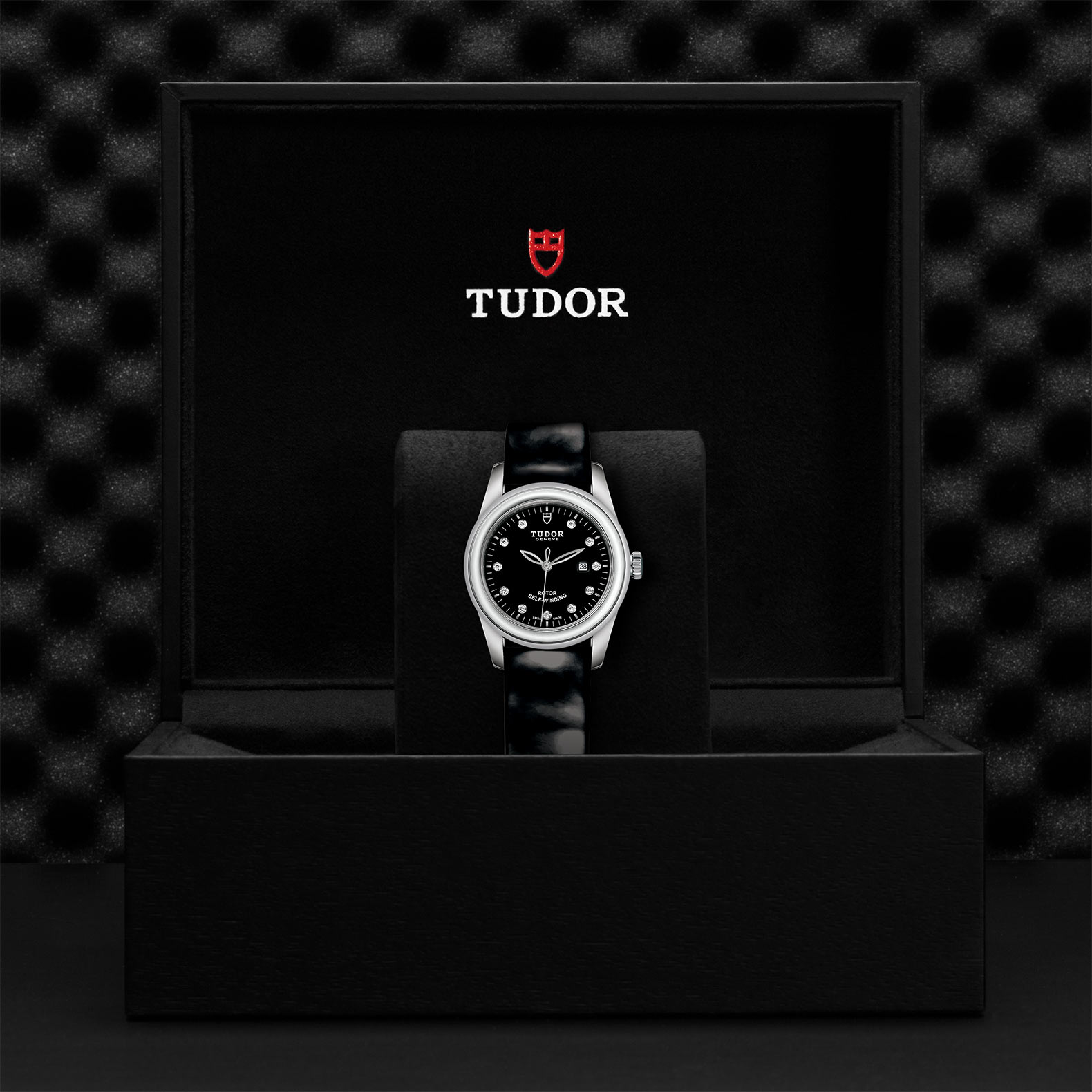 精钢旋入式上链錶冠,饰以帝舵表标志