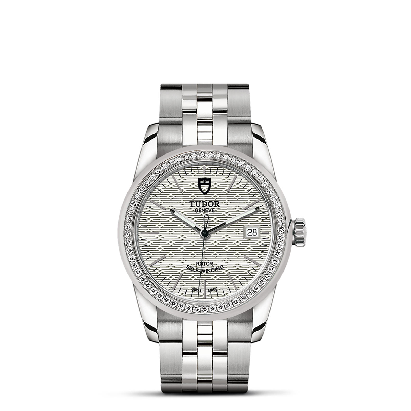 钢,中型款 35至39毫米,钢表带,7排链节,外侧链节表面磨砂,中间链节磨光,配摺扣及保险扣