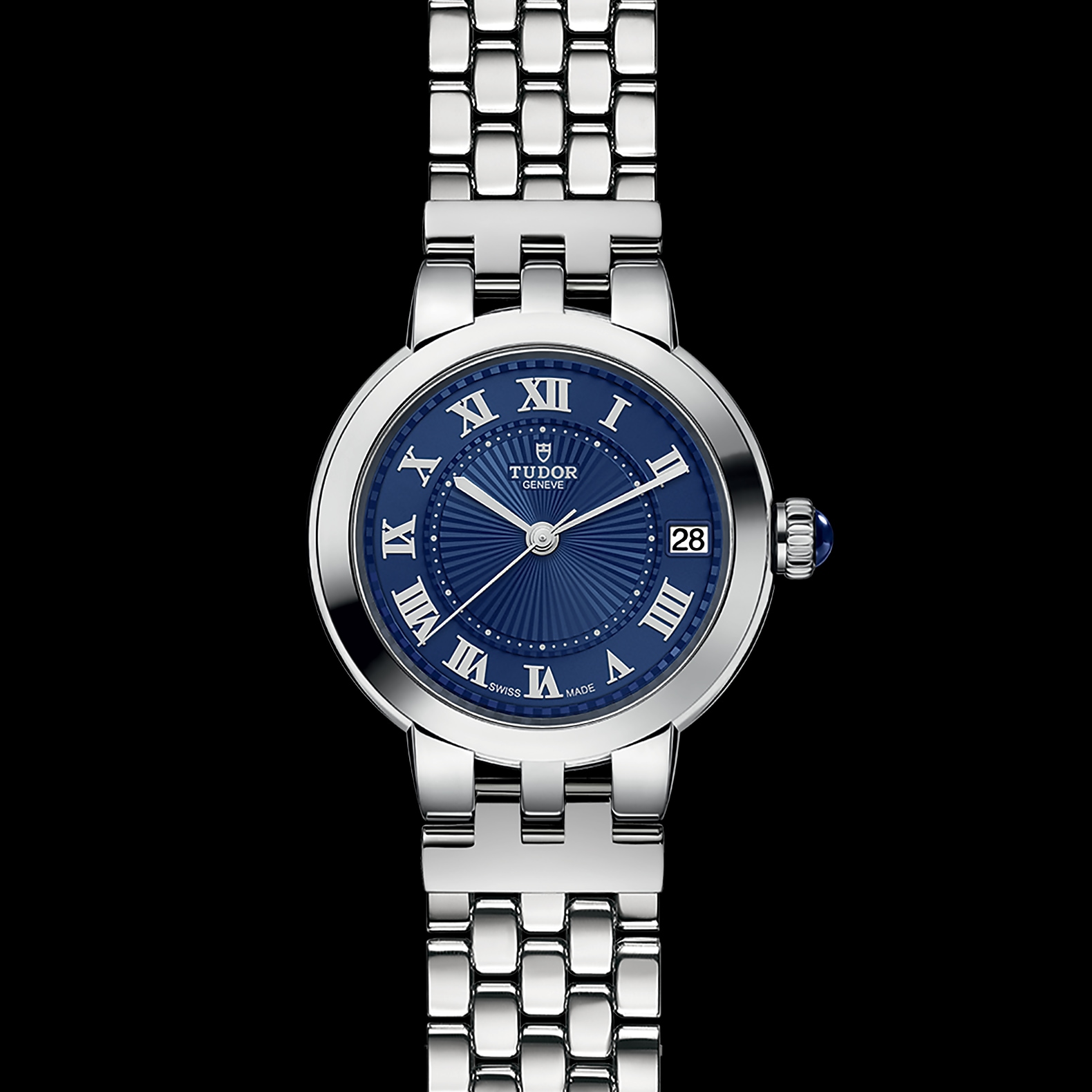 玫瑰系列重新演绎,秉承古典优雅及永恒经典的精神,善用品牌名垂青史的美学特色。玫瑰系列仅以不锈钢制成,备有六种配置和三种不同尺寸,表壳直径分别为26、30及34毫米,蛋白色表盘饰有精美的浮雕图案,以蓝色漆面罗马数字或钻石作为钟点标记。今年,玫瑰系列的所有尺寸均可选配新款“帝舵蓝”表盘。
